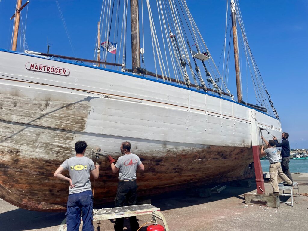 Aujourd’hui, le « MARTROGER III » est un bateau de patrimoine maritime. Il navigue désormais dans un cadre d’activités culturelles et historiques. Entretenu par l’association des amis du Martroger III, un groupe de passionnés, le navire nous a été confié pour des travaux de restauration :
